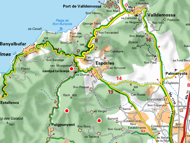 Der als Museum ausgestaltete Gutshof La Granja liegt 1,5km nordwestlich von Esporles. Die Zufahrt ist sehr gut ausgeschildert. Ca 100m vor dem Haupteingang befindet sich ein grosser Parkplatz.