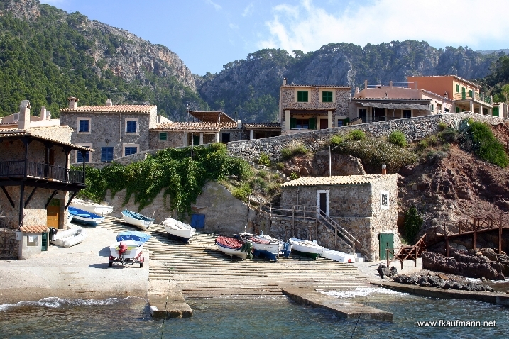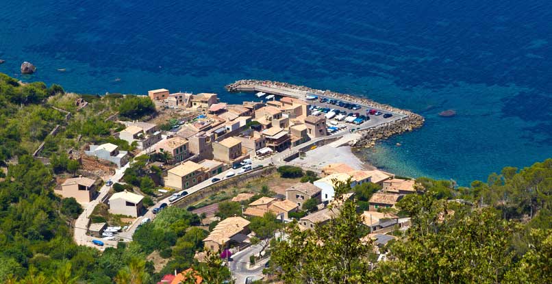 Port de Valldemossa liegt knapp 20 Minuten von Valldemosa selbst entfernt. Eine Serpentinenstraße führt kurz hinter dem Ortsausgang von Valledmossa direkt nach unten ans Meer. Alleine der Blick von oben auf das Meer lohnt den Abstecher hierher.