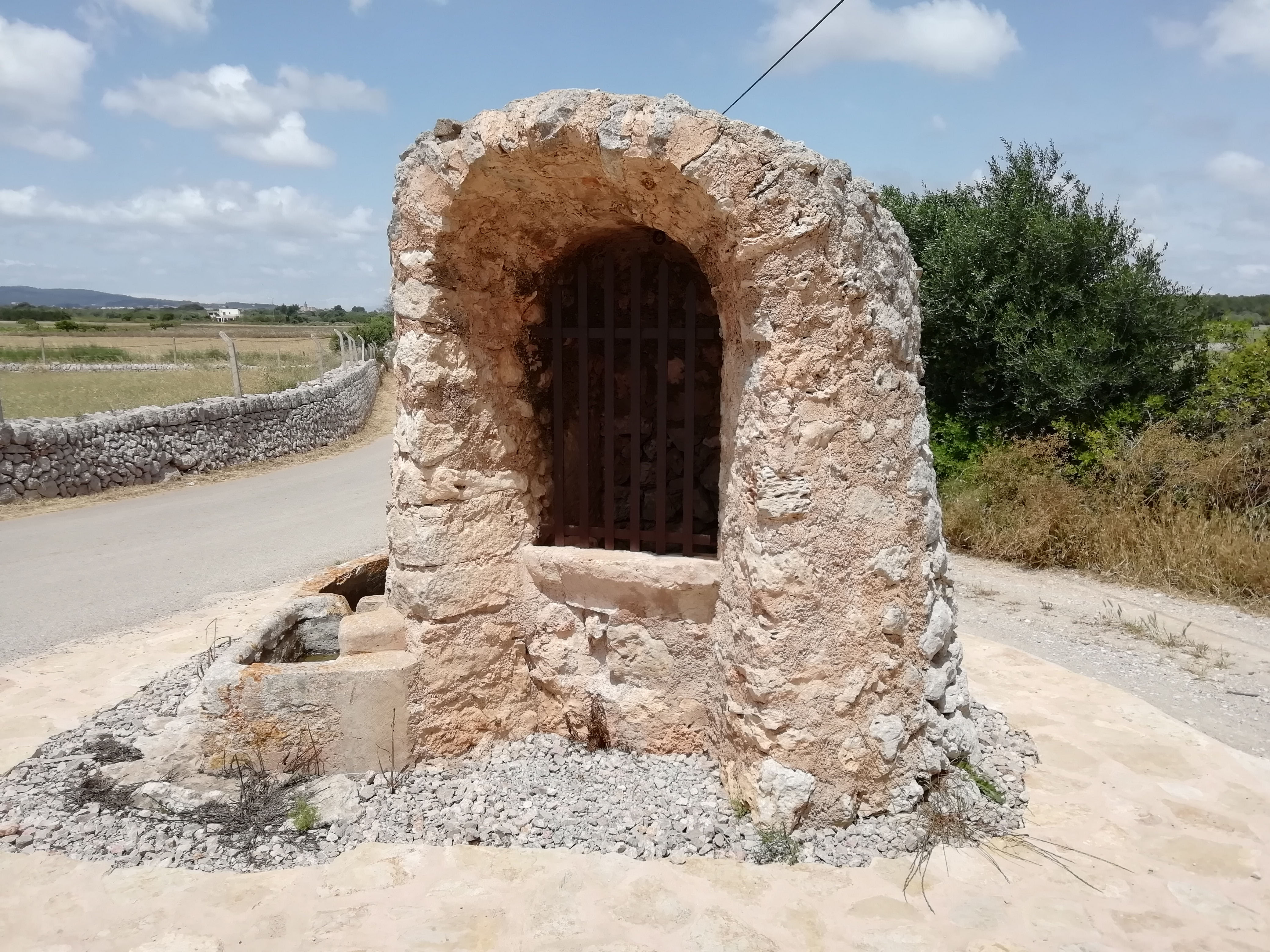Hier halten Sie an, zunächst um den Pou de Son Mora zu sehen, der etwa hundert Meter von der Hauptroute entfernt ist, und dann, wenn Sie in Richtung Son Orell auf einem unbefestigten Feldweg weitergehen, können Sie einen neuen Brunnen mit seinen Seitenbänken und „langgestreckten Pfählen“ sehen.
