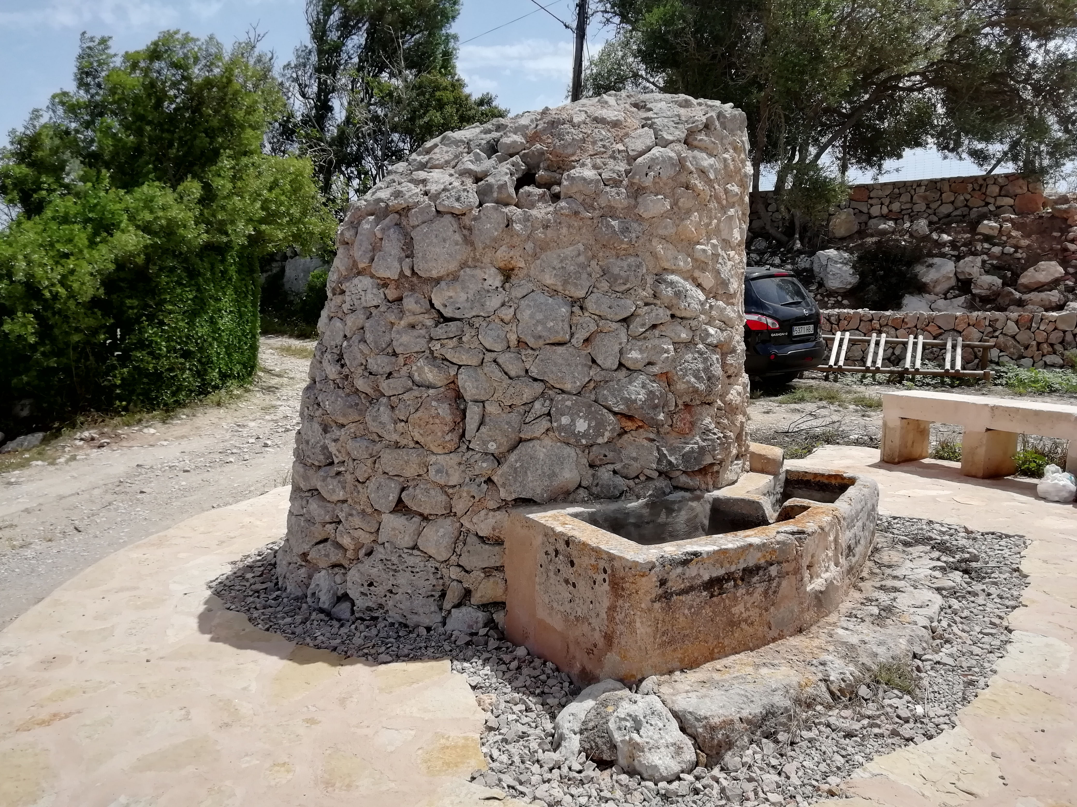 Wenn Sie die Landstraße von Son Pau erreichen, biegen Sie links ab. Auf diesem Weg finden Sie den ersten Haltepunkt: den Pou de Son Pau (P), der auf einer kleinen Abzweigung etwa 100 Meter vom Hauptweg entfernt liegt.