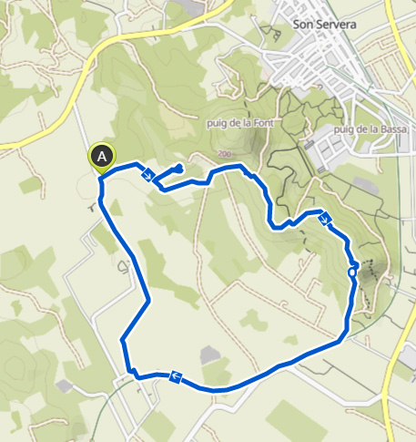 Lage: Der Hausberg von Son Servera sagt dem Namen nach schon, wo er sich befindet, nämlich vor den Toren von Son Servera. Unsere Tour beginnen wir etwas abseits gelegen von dem eigentlichem Örtchen und zwar auf der bergabgewandten Seite von Son Servera. Von der MA-4030 Son Servera Reichtung Sant Llorenc erreichen wir eine kleine Zufahrtstraße, wo wir unseren Wagen abstellen können