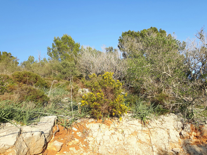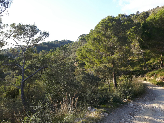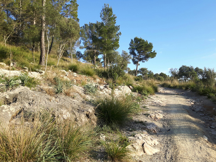 Der Aufstieg zum kleinen Gipfel des Berges verläuft beschwingt und ist nicht mit größeren Steigungen versehen. Auf halber Strecke können wir uns entscheiden, welches Streckenziel wir verfolgen. Es besteht die Möglichkeit - je nach Wanderlaune - auf einem kleinen Pfad direkt nach Son Servera zu wandern, bereits einen Abstiegsweg Richtung Via Verde zu wählen, oder wie heute den Gipfel zu erklimmen.